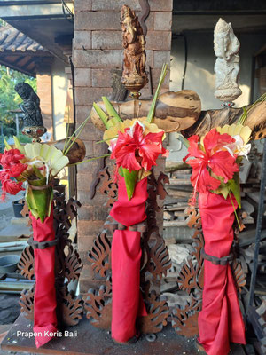 Jeder hier angebotene Kris wird nach traditioneller Methode gefertigt, von balinesischen Schmieden hergestellt und speziell für die rituelle Arbeit vorbereitet.